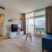 El apartamento es tranquilo y acogedor gracias a las tonalidades neutras y a la abundancia de luz natural. Tiene 2 habitaciones y 2 baños, una habitación con una cama doble y un baño en suite y otra con una litera. La sala de estar es luminosa y cuenta con una terraza perfecta para disfrutar de una relajada cena. Si viajas a Barcelona en coche, el complejo dispone de plazas de parking y vigilancia las 24 horas del día.