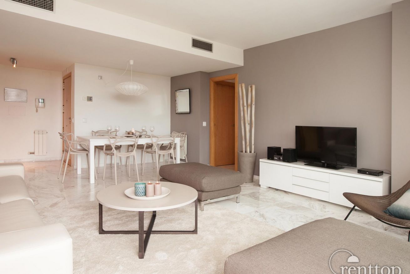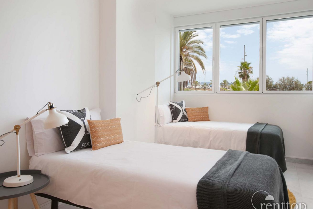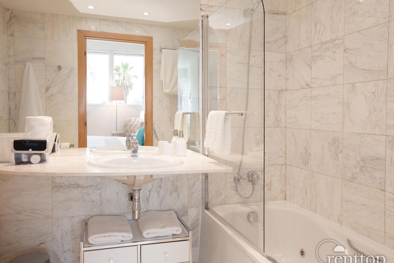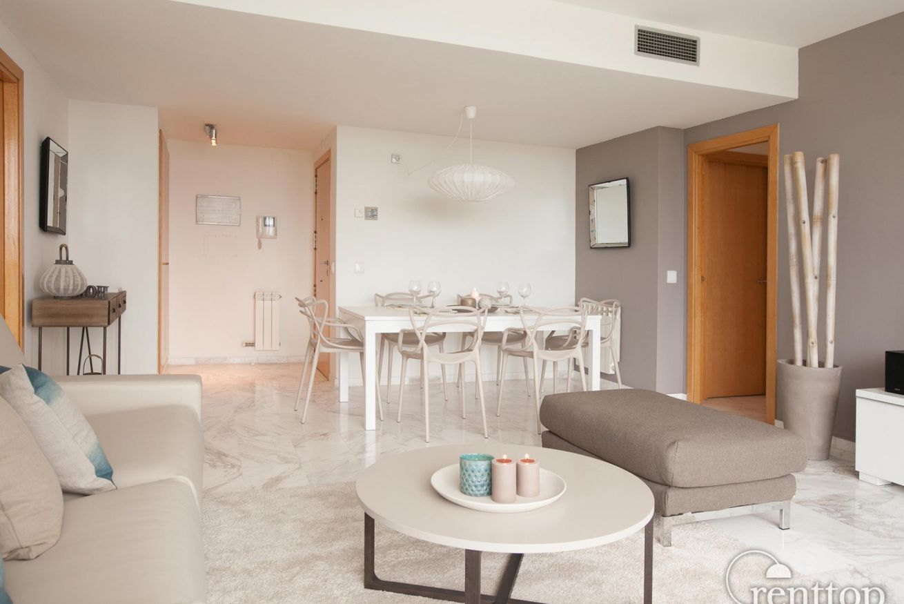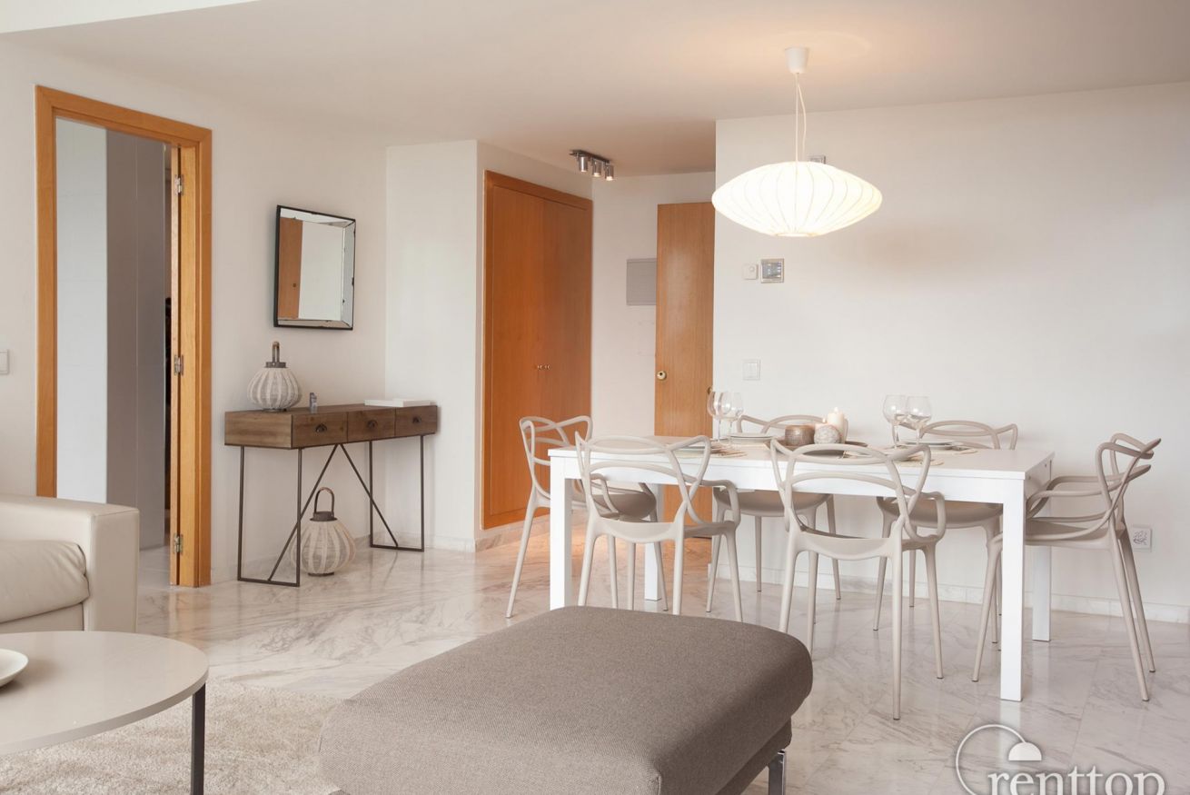 Con una decoración y un mobiliario de diseño, este apartamento cuenta con 3 habitaciones dobles, una de ellas con cama de matrimonio y baño propio, mientras que los otros dos tienen 2 camas individuales. También hay dos baños completos. La cocina y el comedor son muy espaciosos y se comunican por la amplia terraza que da luminosidad a todas las estancias.