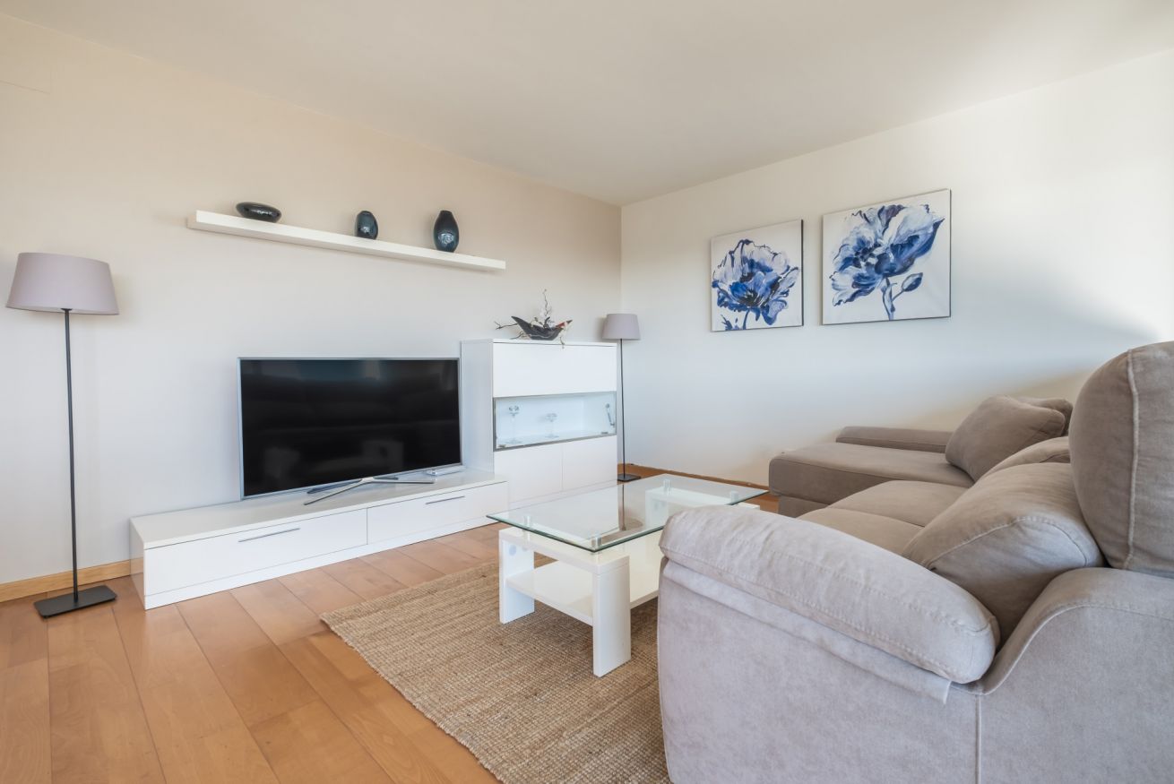 Este apartamento dispone de 3 dormitorios: uno con cama de matrimonio, y los otros dos con dos camas individuales. El comedor cuenta con un doble sofá cama y hay dos cuartos de baño completos. La terraza es amplia y comunica con la cocina y el comedor.