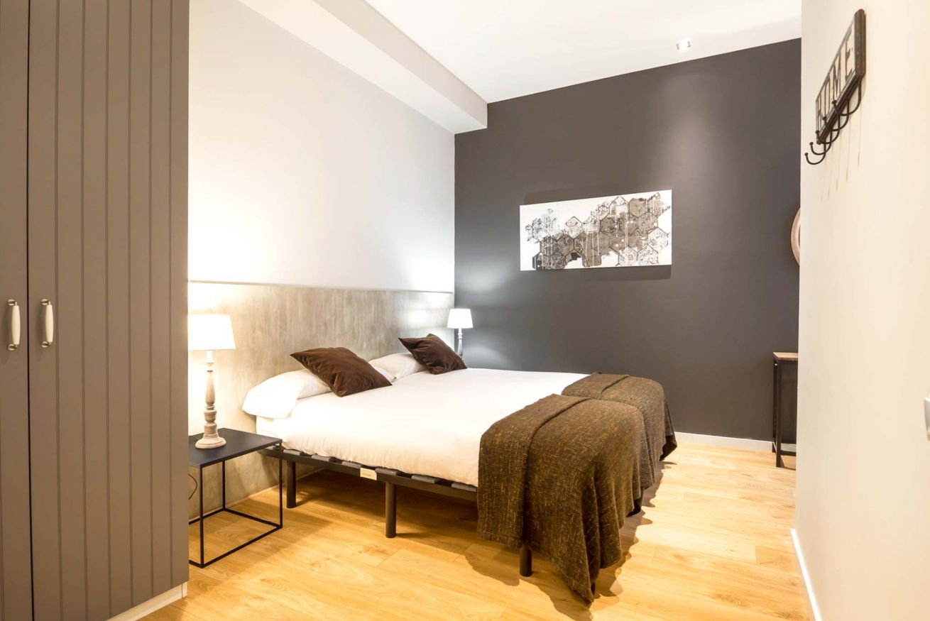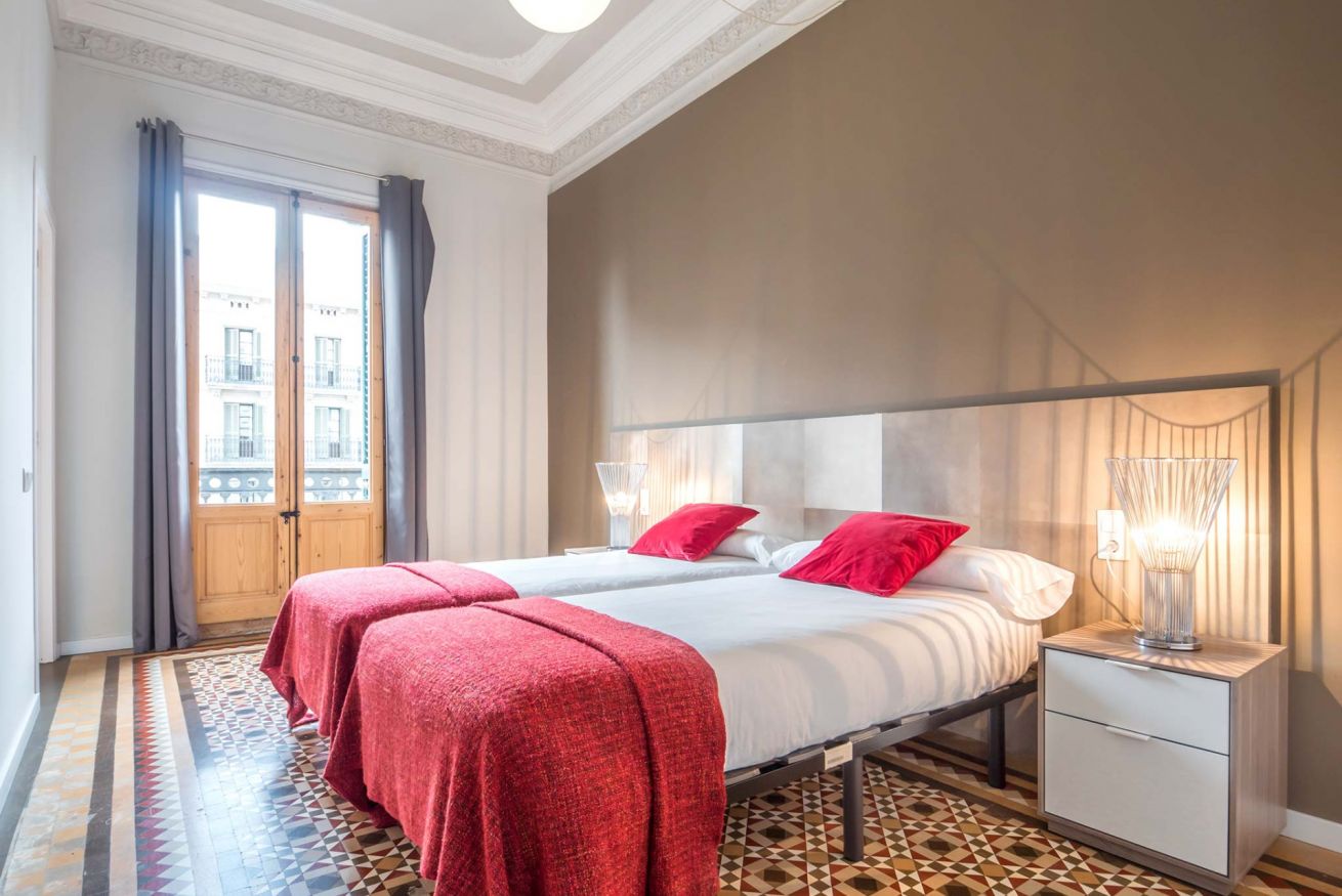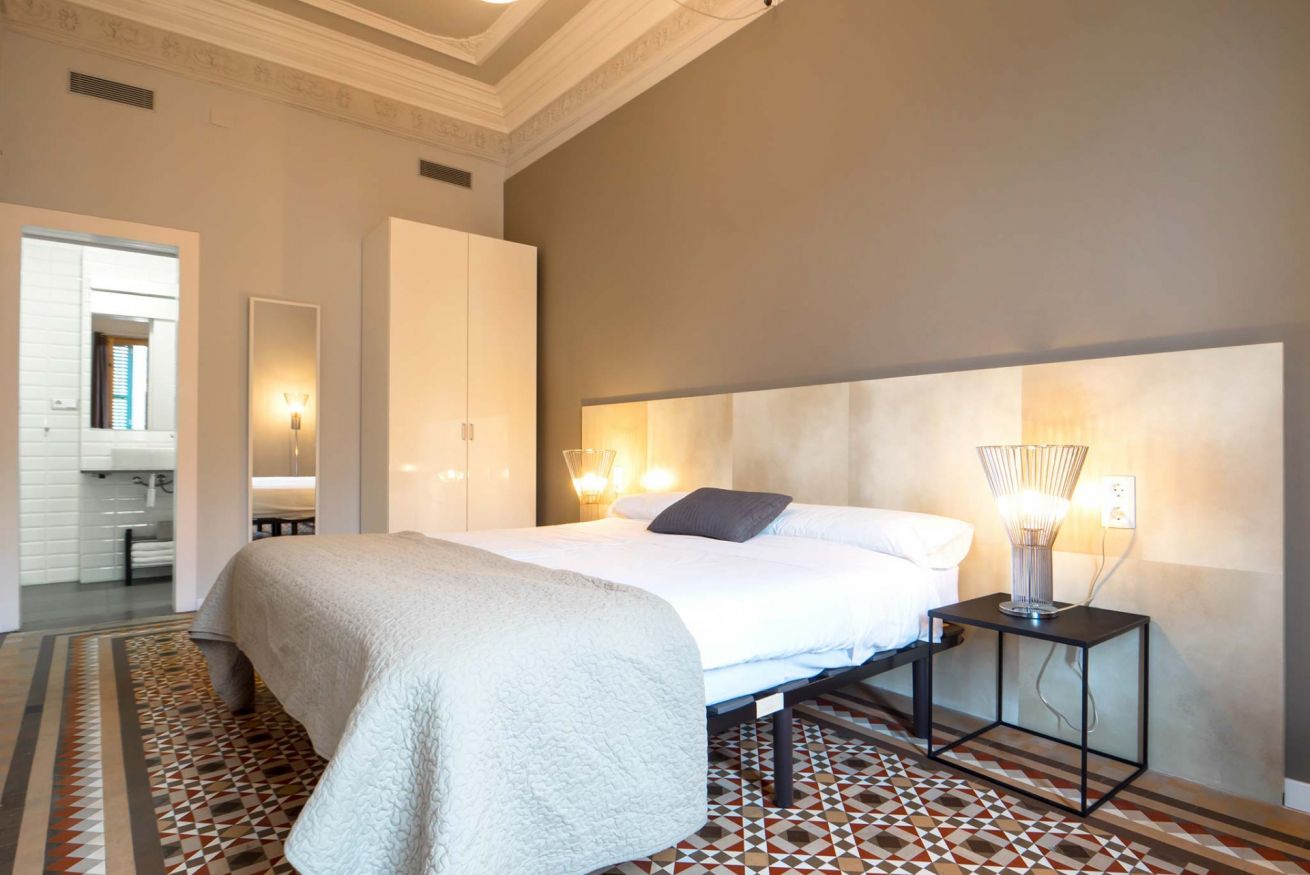 Dispone de 3 habitaciones dobles, un dormitorio principal con baño propio y dos habitaciones con dos camas individuales en cada una que se pueden hacer como una doble bajo petición. Un salón amplio y luminoso con un doble sofá cama y cocina tipo office. El apartamento conserva la estructura original con detalles de principios de siglo, como los arcos del techo o los ventanales del salón.