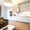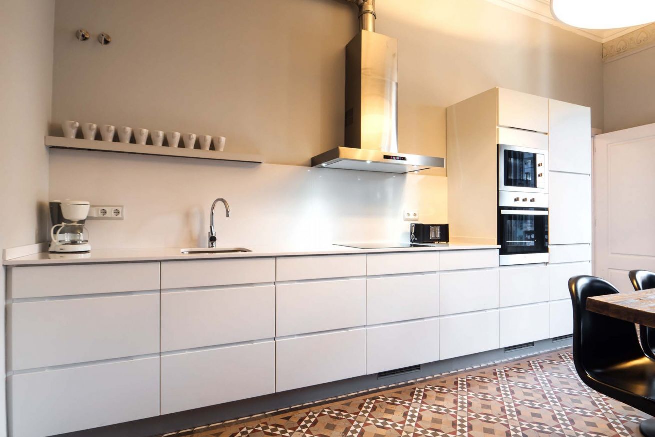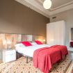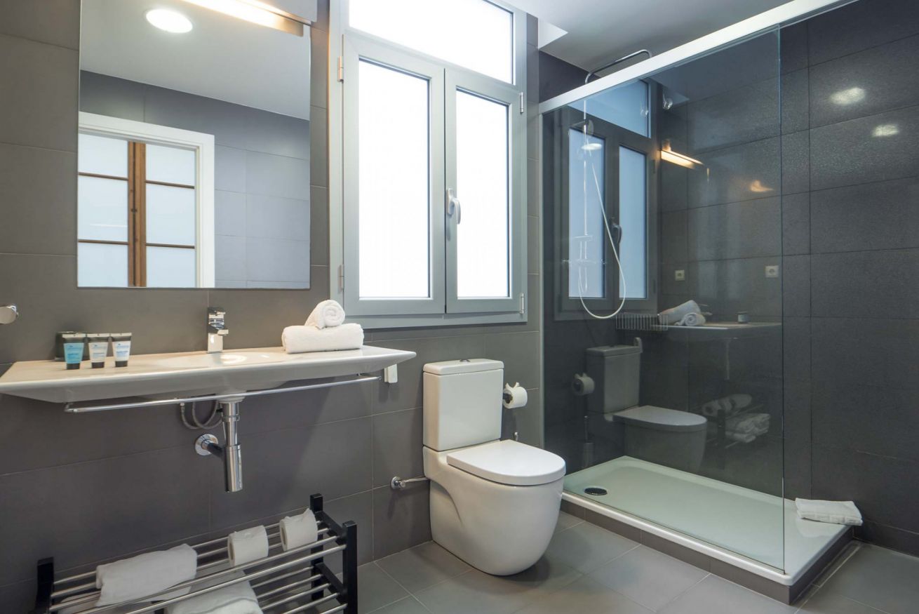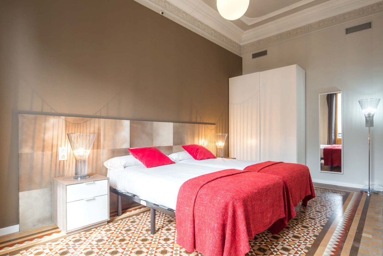 Dispone de 3 habitaciones dobles, un dormitorio principal con baño propio y dos habitaciones con dos camas individuales en cada una que se pueden hacer como una doble bajo petición. Un salón amplio y luminoso con un doble sofá cama y cocina tipo office. El apartamento conserva la estructura original con detalles de principios de siglo, como los arcos del techo o los ventanales del salón.