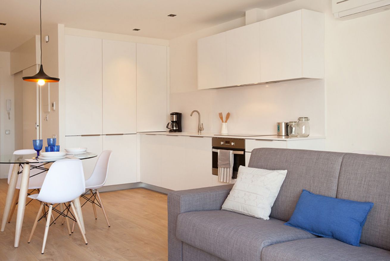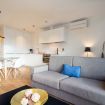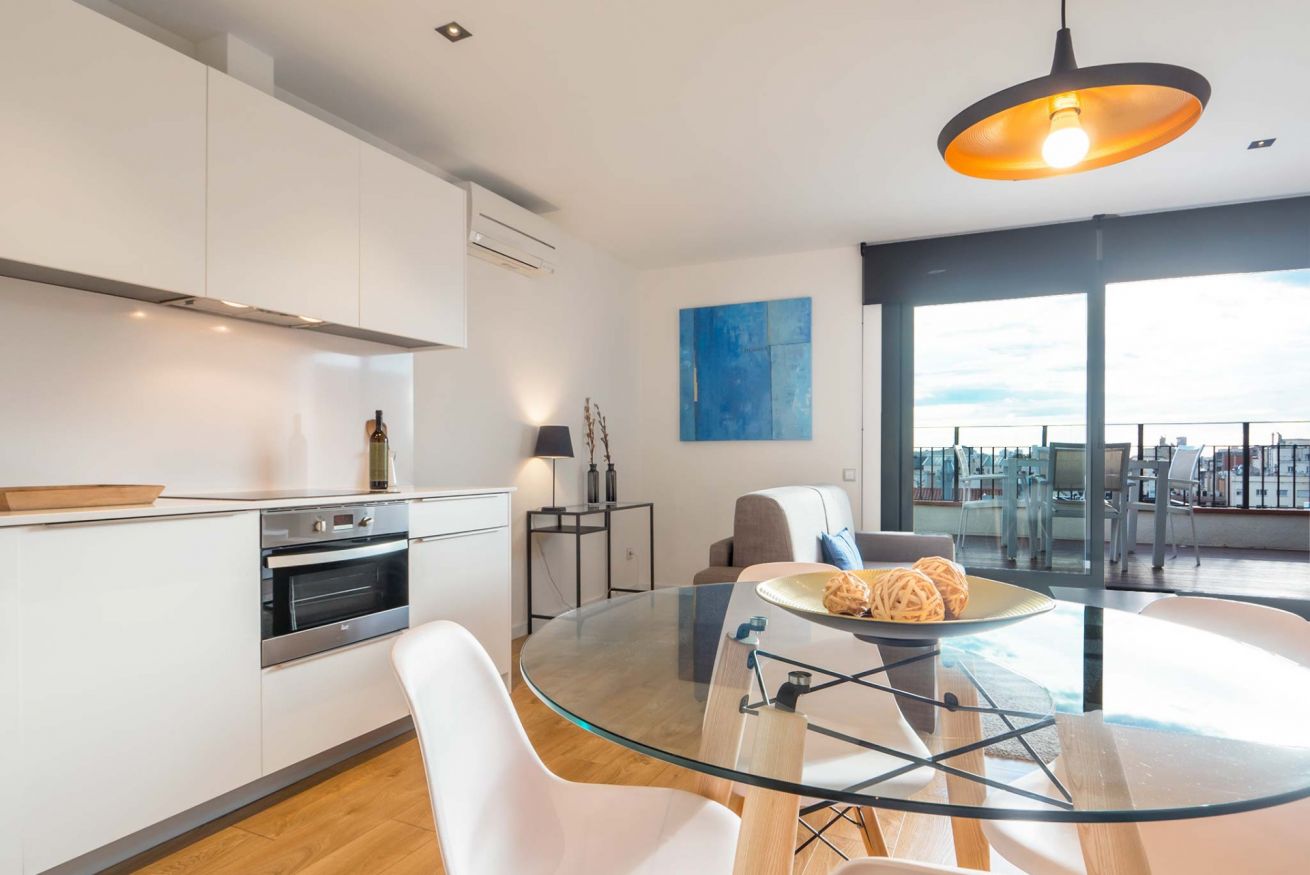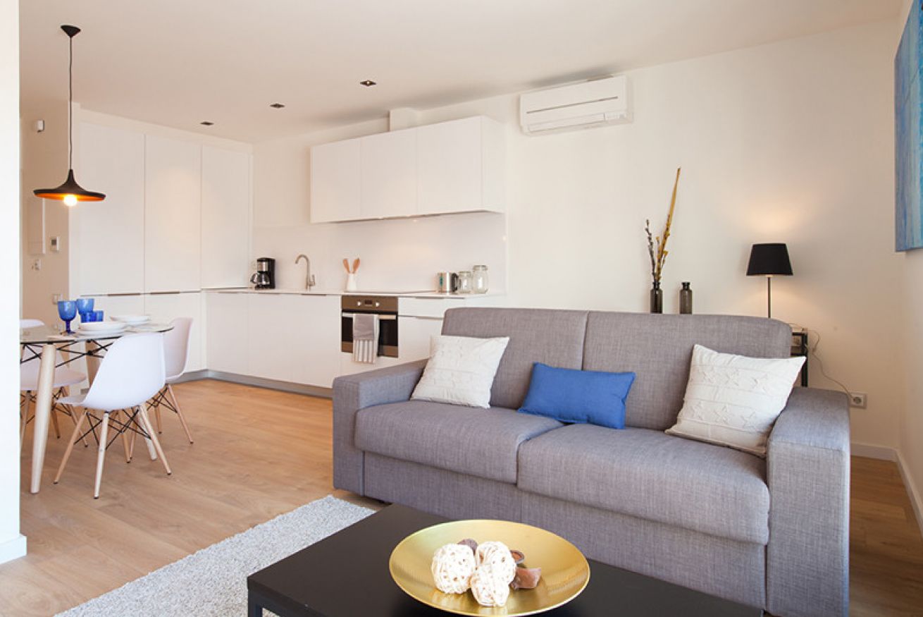 Este apartamento dispone de una habitación con cama de matrimonio y un cómodo sofá cama para dos personas. El apartamento es muy acogedor con mobiliario de diseño y acabados de calidad. Dispone de un baño con plato de ducha y una bonita y espaciosa terraza con vistas a la ciudad