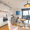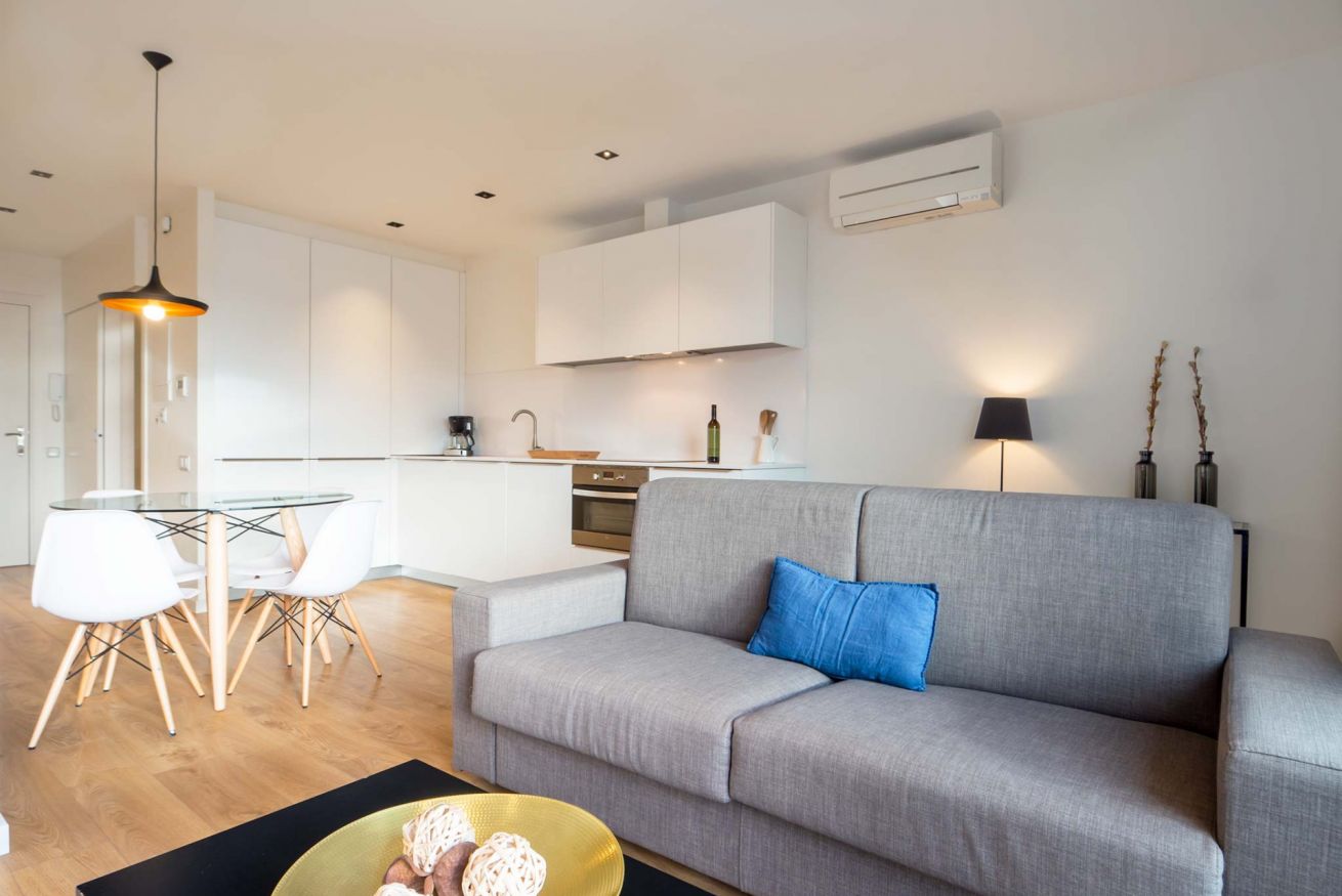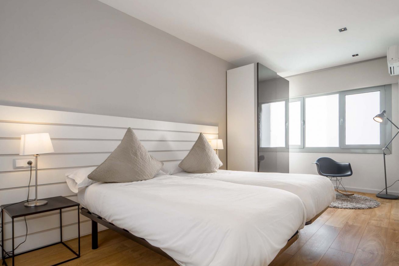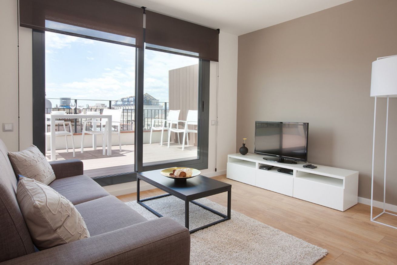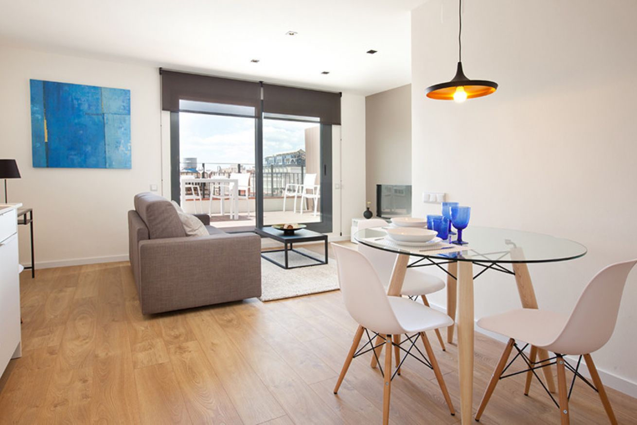 Este apartamento dispone de una habitación con cama de matrimonio y un cómodo sofá cama para dos personas. El apartamento es muy acogedor con mobiliario de diseño y acabados de calidad. Dispone de un baño con plato de ducha y una bonita y espaciosa terraza con vistas a la ciudad